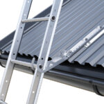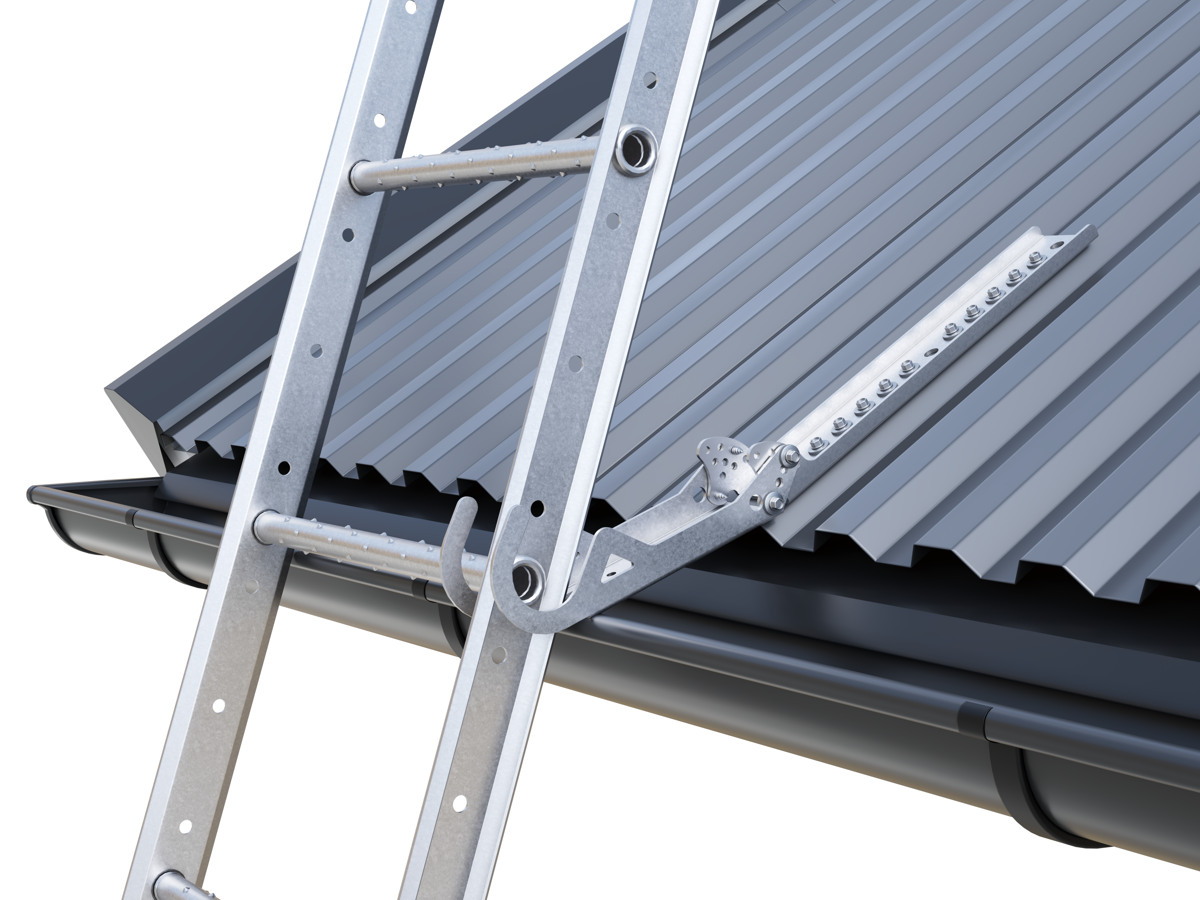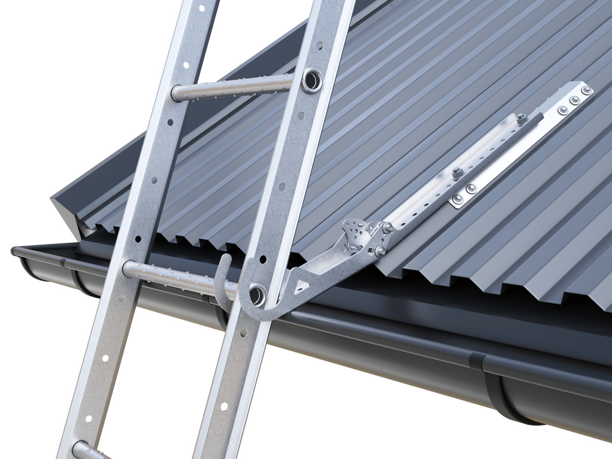 Vår sklisikring øker sikkerheten din når du bruker løse bakkestiger. Sikringen forhindrer at stigen glir nedover, bakover eller til siden når du klatrer opp. Sklisikringen bør monteres på siden av takstigen/-broen for å gjøre overgangen fra den løse stigen enklere. Utførelse i henhold til SS 831342.