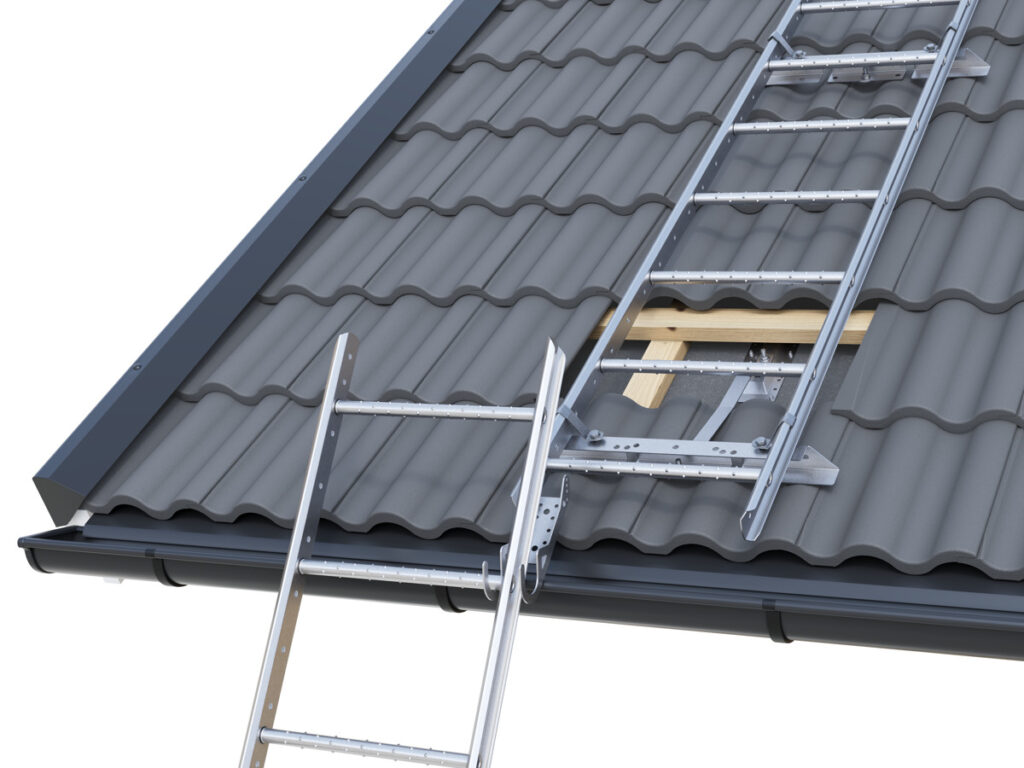 Vår takstige er både lett og stabil for trygg og enkel installasjon. Trinnpinnen er profilert for å økt sklisikring og er flatet ut både inn- og utvendig for dobbel sikkerhet. Takstigen er også godkjent for innfesting av livline.