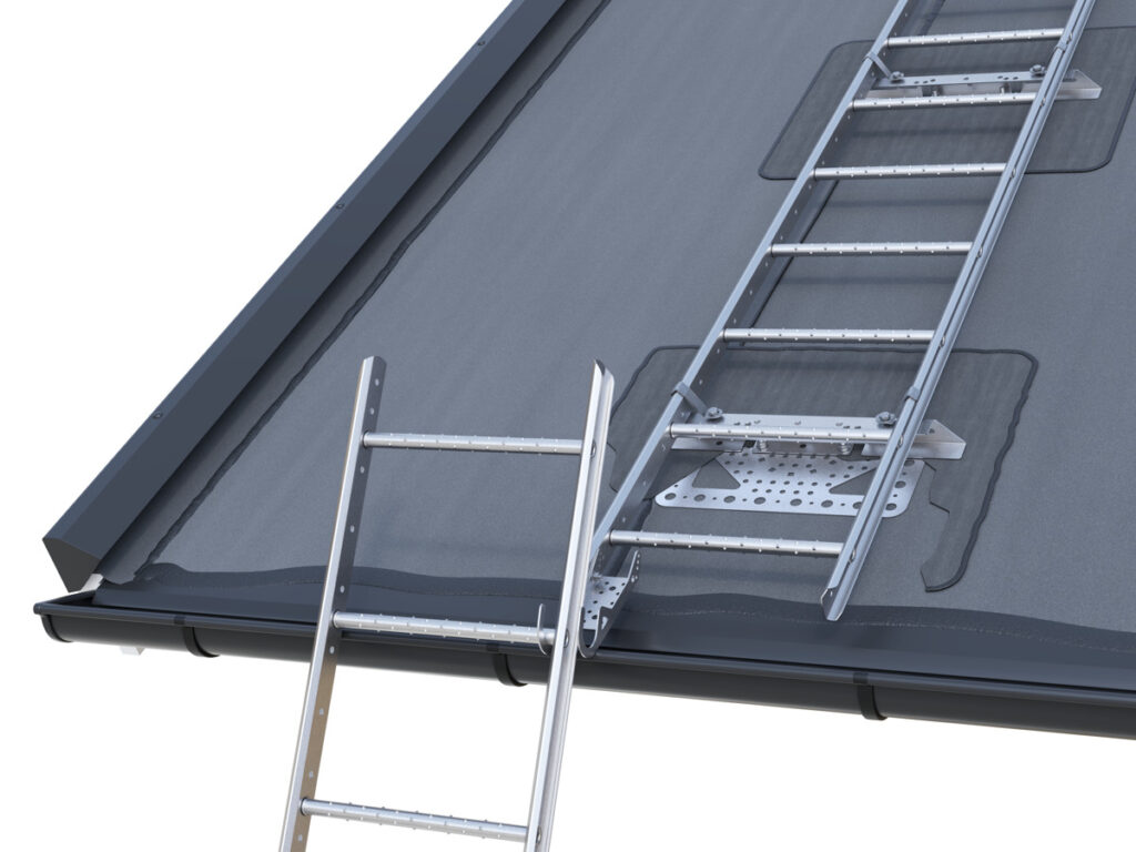 Vår takstige er både lett og stabil for trygg og enkel installasjon. Trinnpinnen er profilert for å økt sklisikring og er flatet ut både inn- og utvendig for dobbel sikkerhet. Takstigen er også godkjent for innfesting av livline.