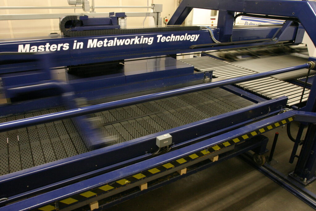 Vi erbjuder stansning, nibbling och pressning på legobasis i vår automatstansningsanläggning av fabrikat Pullmax. Anläggningen innehåller utrustning för hantering av såväl plåtämnen in i maskinen som utmatning/stapling av “skrotskelett”.
