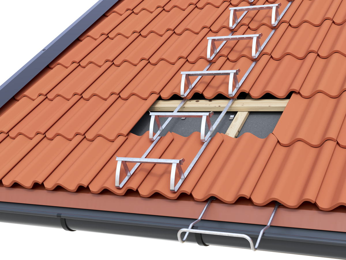 Smidiga och lättmonterade taksteg som ökar din säkerhet vid arbete på taket. Dessa taksteg har en rundad stegyta av halksäker profilplåt. Den rundade stegytan gör att steget passar praktiskt taget alla taklutningar. Stegen krokas fast runt bärläkten. Stegen är typgodkända och får användas då fasadhöjden ej överstiger 4 m eller taklutning över 45°.