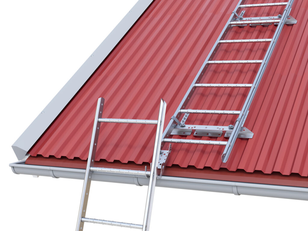 Vår takstege är både lätt och stabil för en trygg och enkel installation. Stegpinnen är profilerad för att ge ökat halkskydd och är stukad både in- och utvändigt för dubbel säkerhet. Takstegen är också godkänd för infästning av livlina.