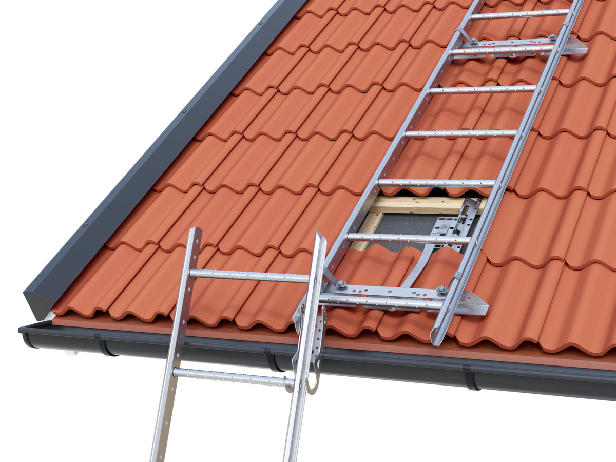 Vår takstege är både lätt och stabil för en trygg och enkel installation. Stegpinnen är profilerad för att ge ökat halkskydd och är stukad både in- och utvändigt för dubbel säkerhet. Takstegen är också godkänd för infästning av livlina.